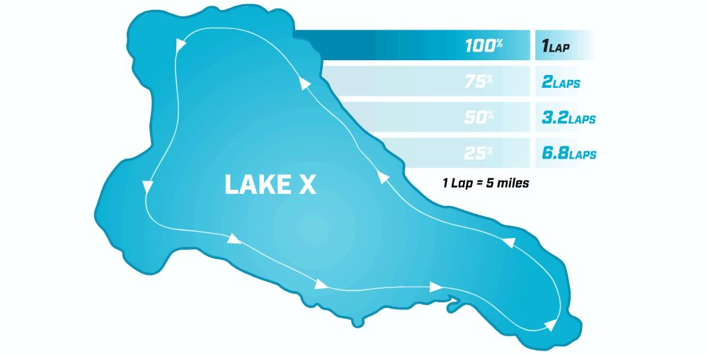 One trip around Mercury’s legendary Lake X test site in Florida is approximately 5 miles. Here’s how many laps you can make on one fully charged 1kWh battery