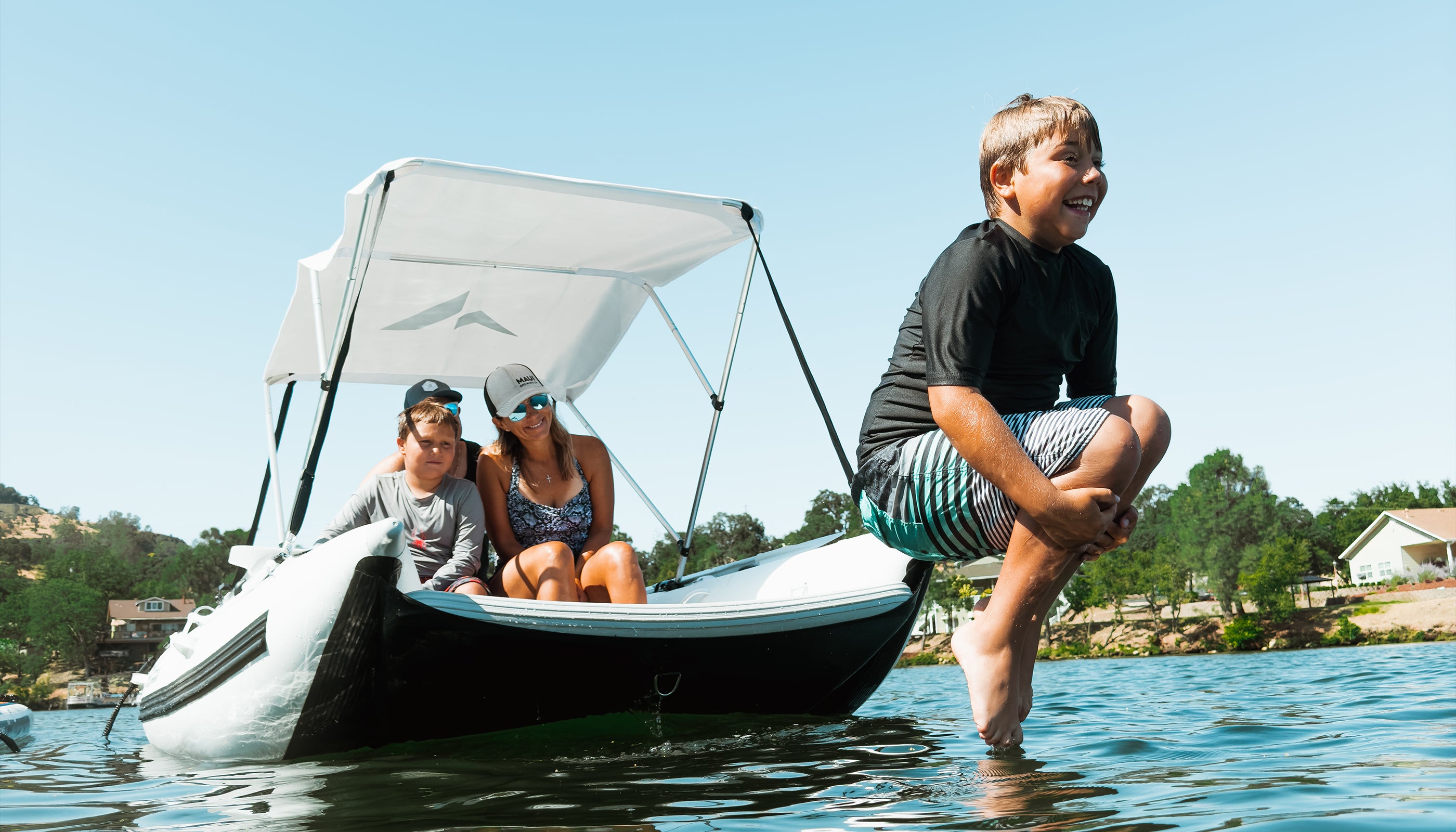 The UV protective canopy is built from marine-grade PVC, the same material used in the hull, ensuring long-lasting durability and resistance to sun and salt exposure. Unlike acrylic or polyester canopies that degrade over time, this construction is designed to perform and endure the elements.