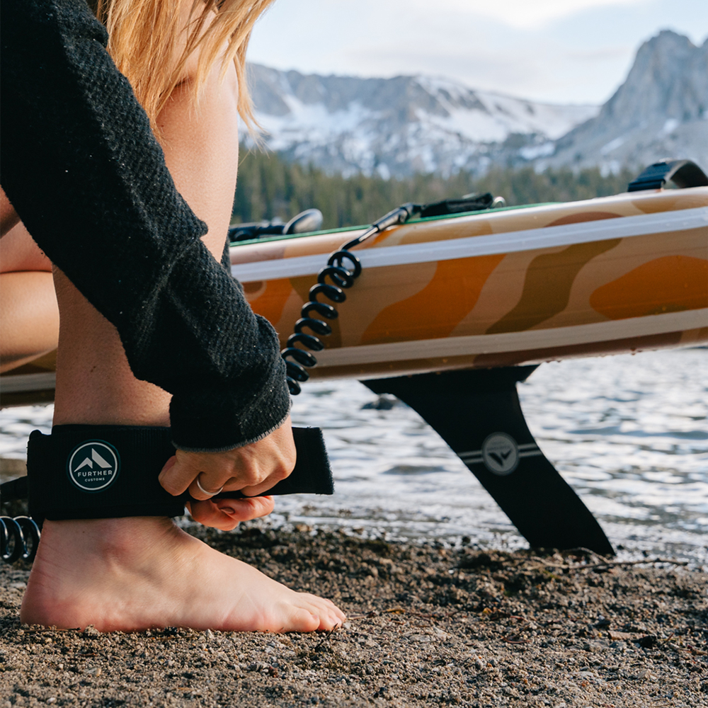 Every Further Customs inflatable paddleboard kit includes everything you need for a premium paddling experience: a thermally welded board, 3-piece carbon fiber paddle, dual-action reversible hand pump, click-in fin, coil leash, shoulder carry strap, repair kit, and a 3-wheeled backpack/carrying bag for easy transport and storage.