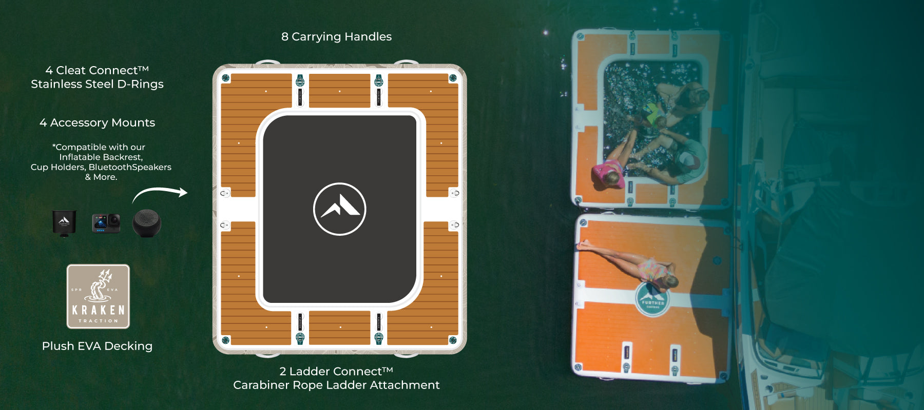 Includes built-in handles on two sides for effortless water entry and exit, along with our Ladder Connect™—a 316 stainless steel carabiner point for attaching an optional rope ladder.