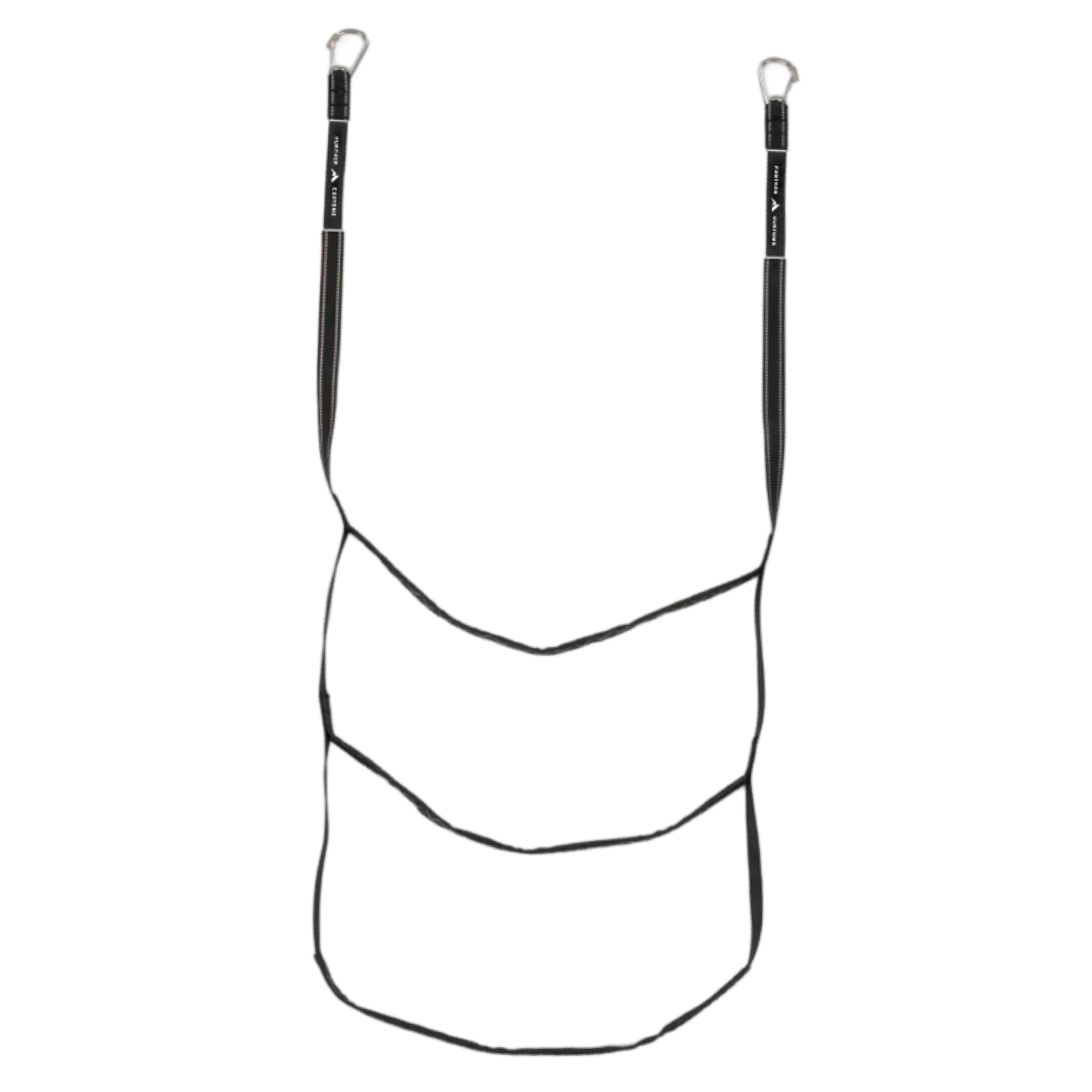 A carabiner rope ladder can be easily connected to the D-rings positioned just below the two neoprene-wrapped side handles on the Avalon Pad mesh water hammock, making water re-entry more comfortable and effortless.