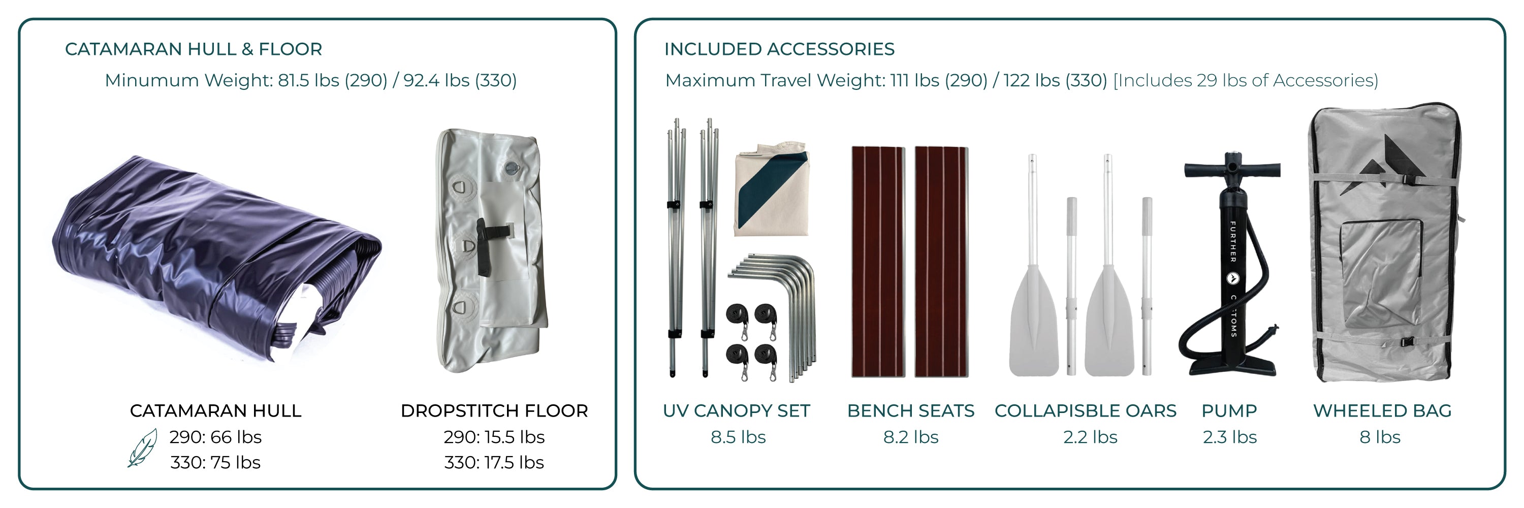 Further Customs Laguna Inflatable Catamaran Best Dinghy for RV & Overland Van Travel Camping Packable Lightweight